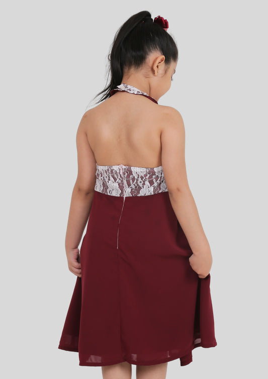 Maroon and White Lace Midi Dress