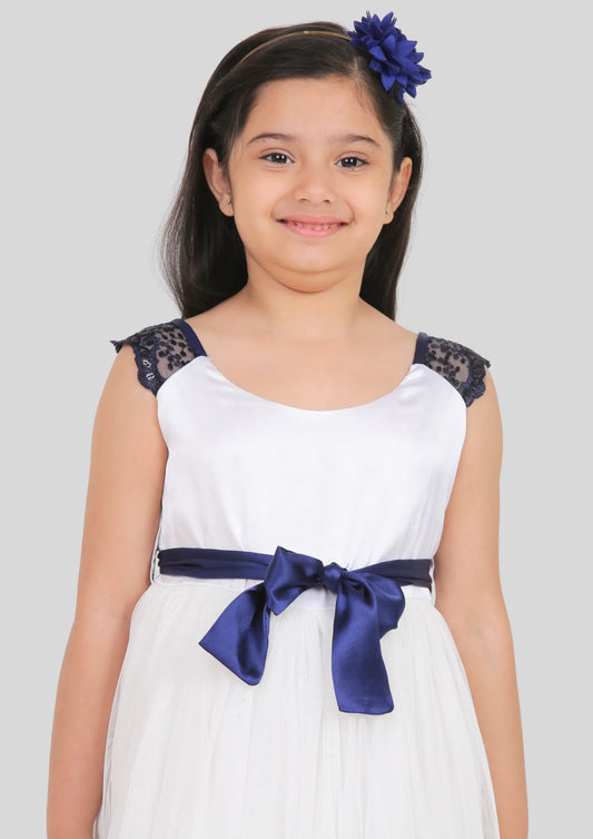White and Navy Blue Midi Party Dress