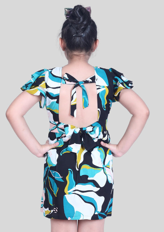 Abstract Print Backless Midi Dress with Pocket