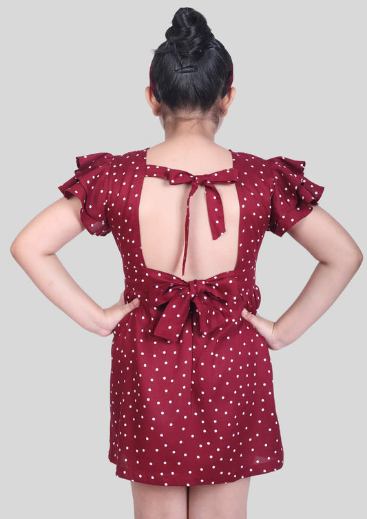 Maroon Polka Dot Backless Midi Dress with Pocket